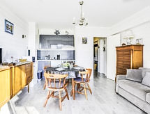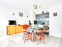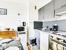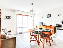 Residens "Les Caravelles". I orten 700 m från centrumet av Cabourg, 10 m från havet, 10 m från stranden. I anläggningen: hiss, centralvärme. Allmän parkering på gatan. Affär 700 m, stormarknad 1.5 km, restaurang 300 m, bad med varma källor "Thalazur" 700 m. Golfbana (9 hål) 1.8 km.Interior