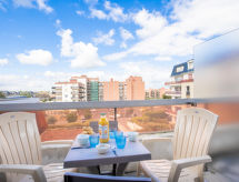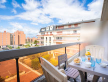 2-rums-lägenhet 35 m2 på 3. våningen, västläge. Vardags-/matrum med 1 bäddsoffa för 2 personer (140 cm, längd 190 cm), TV (flatscreen TV), elektrisk fönsterlucka. Utgång till balkongen. 1 rum med 1 x 2 våningssängar (90 cm, längd 190 cm). Kokvrå (ugn, 3 Induktionshäll, brödrost, vattenkokare, mikrovågsugn, elektrisk kaffemaskin). Dusch/toalett. Eluppvärmning. Parkettgolv. Balkong 5 m2. Balkongmöbler. Utsikt på orten. Till förfogande: strykjärn. Internet (Trådlös LAN [WLAN] , extra). Parkeringsplats nr 163. Notera: rökfri lägenhet. Brandvarnare.- Kännetecken för boendet