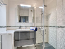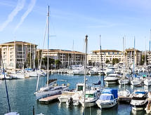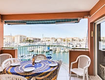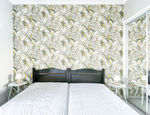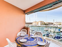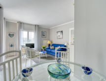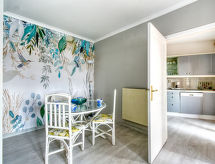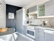 2-rums-lägenhet 48 m2 på 2. våningen. Komfortabelt och vackert inredd: vardags-/matrum med 1 bäddsoffa för 2 personer (1 x 140 cm, längd 190 cm), TV (flatscreen TV). Utgång till terrassen. 1 rum med 1 dubbelsäng (2 x 90 cm, längd 190 cm). Kök (ugn, diskmaskin, 3 kokplattor - glaskeramikhäll, brödrost, vattenkokare, mikrovågsugn, elektrisk kaffemaskin). Dusch, sep. Toalett. Terrass 10 m2. Terrassmöbler. Utsikt på hamnen. Till förfogande: tvättmaskin, strykjärn, hårtork. Internet (Trådlös LAN [WLAN] , extra). Garage nr 1, höjd 185 cm, bredd 230 cm. Notera: brandvarnare.- Utrustning