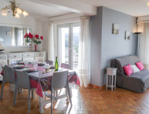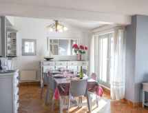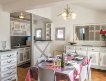 Hyreshus "Les Embruns", med 2 våningar. I centrum av Carnac, 300 m från havet, 300 m från stranden. Privat garage. Affär, restaurang, café 50 m. Golfbana (18 hål) 13 km, seglarskola 1 km. Närbelägna sevärdheter: Vannes 34 km, La Trinité sur Mer 5 km, Golfe du Morbihan, Presqu'île de Quiberon 18 km, Alignements de Carnac 6 km, Thalassothérapie 300 m.Interior