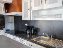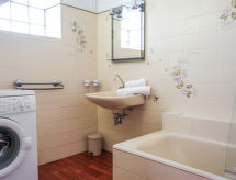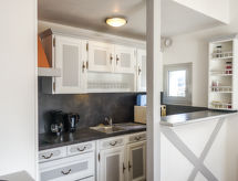2-rums-lägenhet 50 m2 på 1. våningen. Rymlig, praktiskt och vackert inredd: vardags-/matrum med 1 bäddsoffa för 2 personer (1 x 140 cm, längd 190 cm), TV. Utgång till terrassen, mot sydväst. 1 rum med 1 säng (90 cm), 1 fransk säng (140 cm). Utgång till terrassen. Kokvrå (ugn, diskmaskin, 3 Induktionshäll, mikrovågsugn, elektrisk kaffemaskin). Badkar, sep. Toalett. Eluppvärmning. Stor terrass 70 m2. Terrassmöbler, utegrill, vilstolar (4). Till förfogande: tvättmaskin, strykjärn. Internet (Trådlös LAN [WLAN] , extra). Parkeringsplats nr 2. Notera: brandvarnare.- Utrustning