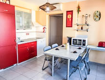 Residens "Les Glycines", med 3 våningar. I ortsdelen Place Rodin, centralt läge, 150 m från havet, 100 m från stranden. I huset: hiss. Allmän parkering på gatan extra. Affär, livsmedelsaffär 100 m, stormarknad 1 km, restaurang 100 m, bageri 50 m, järnvägsstation "Elne" 8.2 km, sandstrand "Plage de l'Art" 100 m. Sporthamn 1.5 km, golfbana (27 hål) 2.5 km, seglarskola 3 km, minigolf 900 m, ridstall 2.5 km, sportcentrum 3.7 km. Närbelägna sevärdheter: Aqualand 5 km. Observera: Det finns en marknad framför bostaden på tisdagar och fredagar. Parkeringsrestriktioner fram till klockan 14:00.Interior