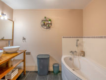 3-rums-lägenhet 75 m2 på 2. våningen. Rymlig, vackert och modernt inredd: stort vardags-/matrum med TV (flatscreen TV). 1 rum med 1 fransk säng (1 x 160 cm, längd 200 cm). 1 rum med 2 sängar (90 cm, längd 200 cm). Öppet kök (ugn, diskmaskin, 4 kokplattor - glaskeramikhäll, brödrost, vattenkokare, mikrovågsugn, elektrisk kaffemaskin, raclettegrill). Badkar/dusch, sep. Toalett, dubbelt handfat. Gasuppvärmning. Till förfogande: tvättmaskin. Internet (Trådlös LAN [WLAN] , gratis). Garage. Notera: brandvarnare. 3528800305244- Kännetecken för boendet