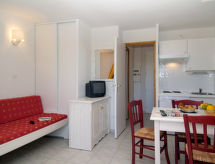 "Les Hauts de Salavas (VPD470)", 2-rums-lägenhet 28 m2. Objekt passande för 4 vuxna + 1 barn. Ljus, praktiskt inredd: vardags-/sovrum med 1 bäddsoffa, 1 utdragbar säng, matbord och TV. 1 rum med 1 x 1 våningssängar, 2 sovmöjligheter. Kokvrå (4 kokplattor, diskmaskin, mikrovågsugn, elektrisk kaffemaskin). Dusch/toalett. Eluppvärmning. Balkong eller terrass. Balkongmöbler. Till förfogande: hög barnstol, barnsäng. Internet (Trådlös LAN [WLAN] , extra). Notera: rökfri lägenhet. Max 1 husdjur/hund tillåtet. Brandvarnare. På grund av coronaviruset (COVID-19) vidtas i detta boende åtgärder för att garantera säkerheten för gäster och personal. Därför kan vissa tjänster och faciliteter vara begränsade eller inte alls tillgängliga.- Utrustning
