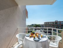2-rums-lägenhet 37 m2 på 3. våningen, sydläge. Praktiskt och komfortabelt inredd: vardags-/matrum med 1 bäddsoffa för 2 personer (140 cm, längd 190 cm), TV (flatscreen TV). Utgång till terrassen. 1 rum med 1 fransk säng (160 cm, längd 200 cm). Kokvrå (ugn, 4 kokplattor - glaskeramikhäll, brödrost, vattenkokare, elektrisk kaffemaskin, kombinerad mikrovågsugn). Dusch/toalett. Eluppvärmning. Liten balkong 4 m2. Balkongmöbler. Begränsad utsikt på hamnen. Till förfogande: tvättmaskin, strykjärn, hårtork. Internet (Trådlös LAN [WLAN] , extra). Notera: lägenhet mot gatan. Rökfri lägenhet, ingen parkeringsplats. Brandvarnare.- Kännetecken för boendet