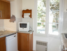 1-rums-studio 27 m2 på 1. våningen, österläge. Vardags-/matrum med 1 bäddsoffa för 2 personer (1 x 140 cm, längd 200 cm), TV (flatscreen TV), luftkonditionering. Kök (ugn, diskmaskin, 4 kokplattor - glaskeramikhäll, brödrost, vattenkokare, mikrovågsugn, frys, elektrisk kaffemaskin). Dusch/toalett. Till förfogande: Internet (Trådlös LAN [WLAN] , gratis). Parkeringsplats. Notera: lägenhet mot gatan. TV bara FR. Brandvarnare. 83112 000188 MN- Utrustning