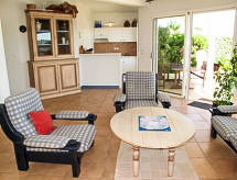 Enfamiljshus "Les Pinasses". I orten 400 m från centrumet av Mimizan Plage, 900 m från havet, 900 m från stranden, 200 m från floden. För privat bruk: tomt 750 m2, välskött trädgård gräsmatta och träd, pool (9 x 5 m, tillgång säsongsbunden: 14.Maj. - 24.Sep.) med larm. Utedusch, parkering på tomten, privat garage. Stormarknad 400 m, järnvägsstation "Labouheyre" 30 km, sandstrand 900 m, simhall 6 km, badsjö "Aureilhan" 10 km. Golfbana (9 hål) 6 km, surfskola 900 m, ridstall 7 km. Närbelägna sevärdheter: Arcachon 70 km, Bordeaux 120 km, Biscarosse 40 km, Centre Nautique 7 km, Casino Mimizan Plage. Vandringsområden Casino Mimizan Plage.Interior