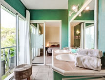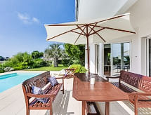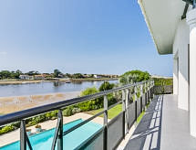 7-rums-hus 240 m2 med 2 våningar. Komfortabelt inrett: vardags-/matrum. Utgång till terrassen. 1 rum med 1 fransk säng (1 x 140 cm, längd 190 cm), dusch. 1 rum med 1 fransk säng (1 x 140 cm, längd 190 cm), badkar/toalett. 1 rum med 2 sängar (90 cm, längd 190 cm). 1 rum med 2 sängar (90 cm, längd 190 cm). Kokvrå (4 kokplattor, ugn). Dusch, sep. Toalett. Övre våning: vardags-/matrum med sat-TV och internationella TV-kanaler (flatscreen TV). Utgång till balkongen. 1 rum med 1 fransk säng (1 x 140 cm, längd 190 cm), badkar/dusch/toalett och dubbelt handfat. Kokvrå (ugn, diskmaskin, 4 kokplattor - glaskeramikhäll, mikrovågsugn). Sep. Toalett. Eluppvärmning. Balkong, sydläge, terrass täckt, sydläge. Terrassmöbler, balkongmöbler, utegrill, vilstolar (6). Vacker utsikt på floden. Till förfogande: tvättmaskin. Internet (Trådlös LAN [WLAN] , gratis). Notera: lämpligt för barnfamiljer. Brandvarnare.- Aktiviteter i närheten