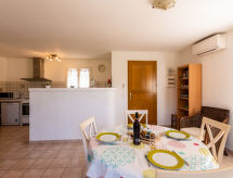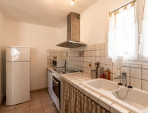 3-rums-villa 65 m2. Vackert inredd: vardags-/matrum med luftkonditionering. Utgång till terrassen. 1 rum med 1 fransk säng (160 cm, längd 190 cm). 1 rum med 2 sängar (90 cm, längd 190 cm). Öppet kök (ugn, diskmaskin, 4 kokplattor - glaskeramikhäll, brödrost, vattenkokare, mikrovågsugn, frys, elektrisk kaffemaskin). Badkar, sep. Toalett med hörnbadkar. Terrass 20 m2. Terrassmöbler, utegrill. Utsikt på bergen. Till förfogande: tvättmaskin. Internet (Trådlös LAN [WLAN] , extra). Notera: rökfri lägenhet. Brandvarnare.- Utrustning
