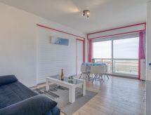 2-rums-lägenhet 37 m2 på 2. våningen. Modernt och mysigt inredd: vardags-/matrum med 1 bäddsoffa för 2 personer (140 cm, längd 190 cm), TV (flatscreen TV). Utgång till balkongen. 1 rum med 1 fransk säng (160 cm, längd 200 cm). Utgång till balkongen. Kök (4 kokplattor, ugn, diskmaskin, brödrost, vattenkokare, mikrovågsugn, elektrisk kaffemaskin). Badkar/toalett. Balkong. Balkongmöbler. Vacker utsikt på havet. Till förfogande: tvättmaskin, hårtork. Internet (Trådlös LAN [WLAN] , extra). Parkeringsplats nr 62. Notera: rökfri lägenhet. 1 husdjur/hund tillåtet. Brandvarnare. '6402400141645- Kännetecken för boendet