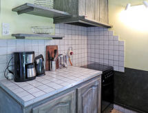 "Les Sables (QUE100)", 2-rums-hus 38 m2. Praktiskt och mysigt inrett: vardags-/sovrum med 1 bäddsoffa för 2 personer (140 cm, längd 190 cm), braskamin (endast för dekoration), matbord och sat-TV (flatscreen TV). Utgång till terrassen. 1 rum med 1 fransk säng (140 cm, längd 190 cm). Öppet kök (ugn, diskmaskin, 3 gasflammor, vattenkokare, mikrovågsugn, frys, elektrisk kaffemaskin). Dusch, sep. Toalett. Ingen uppvärmningsmöjlighet. Terrass täckt. Terrassmöbler, utegrill (flyttbar), vilstolar (2). Utsikt på skogen. Till förfogande: tvättmaskin. Notera: rökfritt hus. Max 3 husdjur/hundar tillåtna. Brandvarnare.- Utrustning