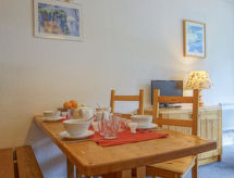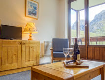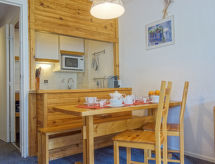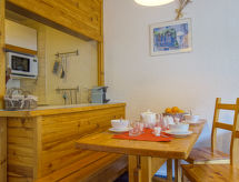 1-rums-lägenhet 30 m2 på 6. våningen. Objekt passande för 2 vuxna + 2 barn. Mycket vackert och smakfullt inredd: vardags-/matrum med 1 utdragbar säng (2 pers. 2 x 80 cm), TV. Alkov med 1 x 2 våningssängar (80 cm). Kokvrå (4 kokplattor, diskmaskin, elektrisk kaffemaskin, Kapslar till kaffemaskin (Nespresso) extra, kombinerad mikrovågsugn). Badkar/toalett. Eluppvärmning. Balkong, sydläge. Utsikt på skidbackarna. Till förfogande: Internet (Trådlös LAN [WLAN] , extra). Notera: brandvarnare.- Kännetecken för boendet