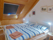 2-rums-takvåning 60 m2 på 4. våningen. Sluttande tak, vackert inredd: vardags-/matrum med kabel-TV. Utgång till balkongen, mot söder. 1 rum med takfönster med 2 sängar (90 cm, längd 200 cm). Öppet kök (ugn, diskmaskin, 4 kokplattor - glaskeramikhäll, vattenkokare, elektrisk kaffemaskin, Kapslar till kaffemaskin (Nespresso) extra). Badkar/toalett. Golvvärme. Balkong 5 m2. Balkongmöbler. Till förfogande: strykjärn, hårtork. Internet (Trådlös LAN [WLAN] , gratis). Max 1 husdjur/hund tillåtet.- Utrustning