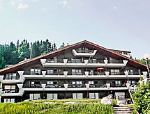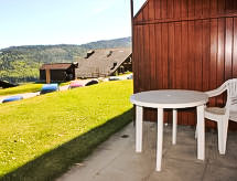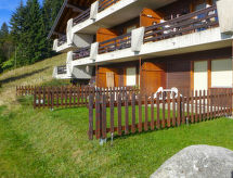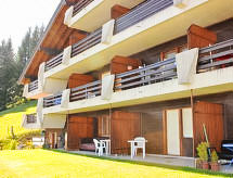 1-rums-lägenhet 25 m2, på bottenvåningen, sydläge. Praktiskt inredd: vardags-/sovrum med 1 bäddsoffa (150 cm, längd 190 cm), öppen spis, matbord, digital-TV, internationella TV-kanaler och flatscreen TV. Utgång till trädgårdssittplatsen. Kokvrå (4 kokplattor, ugn, mikrovågsugn, fondueset (ost )). Badkar/toalett. Uppvärmning. Sydläge, liten trädgårdssittplats. Terrassmöbler. Vacker utsikt på bergen och dalen. Till förfogande: barnsäng för barn under 2 år (extra). Internet (Trådlös LAN [WLAN] , gratis). Parkeringsplats.- Utrustning
