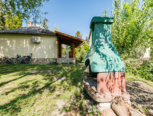 Fonyód: Litet enfamiljshus "Liget", renoverat år 2022. I orten, 450 m från sjön. För privat bruk: tomt 250 m2 (inhägnad), trädgård med träd. Utegrill (gunga). I huset: luftkonditionering, tvättmaskin, cyklar tillgängliga. Till förfogande: cyklar (2), barncyklar (2).Interior