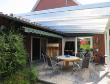 Enfamiljshus "Lilly". I orten 200 m från centrumet av Osteel, 3 km från centrumet av Marienhafe, 13 km från havet, 13 km från stranden. För privat bruk: tomt 600 m2, trädgård med gräsmatta. I huset: centralvärme. Parkering (för 4 bilar) vid huset. Affär 3 km, stormarknad 3 km, restaurang 2 km, bageri 1 km, busshållplats 800 m, järnvägsstation "Marienhafe" 4 km, färja "Norddeich" 13 km, sandstrand "Norddeich" 13 km, utomhusbad 12 km, simhall 3.5 km. Golfbana (9 hål) 10 km, surfskola 13 km.Interior