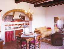 Mycket vackert lantgård "Linearis", fristående, omgiven av träd, fält och vingårdar. 9 lägenheter i residenset. I ortsdelen Linari 3 km från centrumet av Poggibonsi, 6 km från centrumet av Barberino Val d'Elsa, 15 km från centrumet av San Gimignano, avskilt, soligt, upphöjt läge, 82 km från havet, i det gröna. För gemensamt bruk: vacker, välskött trädgård 10'000 m2 (inhägnad) med planteringar och träd, äng, pool inhägnad (14 x 7 m, 165 cm djup, tillgång säsongsbunden: 01.Apr. - 05.Nov.). Utedusch, poolhus med dusch och toalett, terrass, trädgårdsmöbler, utegrill, barnlekplats. I anläggningen: reception, sällskapsrum, tvättmaskin (extra), torktumlare (för gemensamt bruk, extra). Hushållshjälp möjligt (extra). 100 m gångstig till huset. Parkering på tomten, gemensamt garage (extra). Livsmedelsaffär 2 km, stormarknad 3 km, restaurang 2 km, bageri 2 km, busshållplats 3 km, järnvägsstation "Poggibonsi" 3 km, sandstrand "Cecina Mare" 72 km, simhall 3 km. Närbelägna sevärdheter: Siena 36 km, Firenze 46 km, Volterra 38 km, Pisa 90 km. Notera: Öppettider reception klockan 09:00-13:00. Lämplig för barnfamiljer, babyutrustning (inkl.). Lokal försäljning av lantgårdsprodukter. Notera: Av- och pålastning av bagage är möjligt vid semesterbostaden. Residens med elektriska grindar. Ägaren bor i samma hus. Alla hus/lägenheter är individuellt inredda. Plikt att bära badmössa.Interior