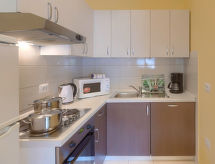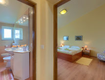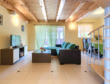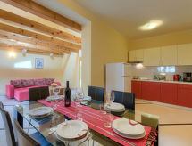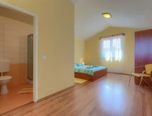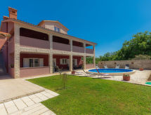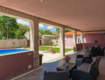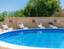 Vackert parhus "Ljiljana". I utkanten, 500 m från centrumet, soligt läge, 2 km från havet, 2 km från stranden. För privat bruk: tomt 1'500 m2 (inhägnad) med planteringar och träd, naturtomt, pool rund (6 m i diameter, 120 cm djup, tillgång säsongsbunden: 01.Maj. - 30.Sep.). Terrass, trädgårdsmöbler, utegrill. I huset: internetanslutning. Parkering vid huset. Affär, restaurang 500 m, stenstrand 2 km, strand vid klippor 2 km. Delar av huset är stängda och obebodda.Interior