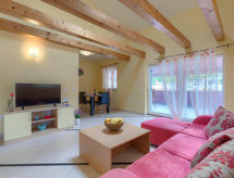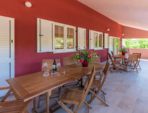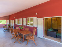 6-rums-ena hälften av ett parhus 180 m2 med 2 våningar på 1. våningen. Vackert och smakfullt inredd: vardags-/matrum 30 m2 med sat-TV och luftkonditionering. Utgång till terrassen. Öppet galleri med 2 sängar (80 cm, längd 200 cm). 1 rum med 1 dubbelsäng (2 x 80 cm, längd 200 cm). Ingång med luftkonditionering. Vardags-/matrum med 1 bäddsoffa för 2 personer, köksblock, sat-TV och luftkonditionering. Utgång till terrassen. 2 rum, till varje rum hör, 1 dubbelsäng (2 x 80 cm, längd 200 cm). Öppet kök (4 kokplattor, ugn, diskmaskin, mikrovågsugn, frys). 2 duschar/toaletter. Övre våning: ingång med luftkonditionering. 1 rum med 1 dubbelsäng (2 x 80 cm, längd 200 cm), dusch/toalett. Terrass 50 m2, täckt. Terrassmöbler. Utsikt på swimming-poolen. Till förfogande: tvättmaskin. Internet (Trådlös LAN [WLAN] , gratis).- Utrustning