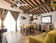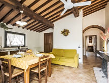 "Loggiato", 2-rums-lägenhet 52 m2, på bottenvåningen. Praktiskt och smakfullt inredd: vardags-/matrum med 1 bäddsoffa för 2 personer, öppen spis och sat-TV. 1 dubbelrum. Utgång till trädgården. Kokvrå (4 kokplattor, miniugn). Dusch/bidé/toalett. Uppvärmning (extra). Till förfogande: myggnät. Internet (Trådlös LAN [WLAN] , gratis).- Utrustning