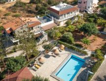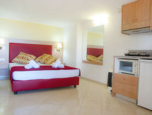"Love Nest", 1-rums-studio 20 m2. Objekt passande för 2 vuxna. Komfortabelt och vackert inredd: öppet vardags-/sovrum med 1 dubbelsäng och sat-TV (flatscreen TV). Öppet kök (2 kokplattor, miniugn, elektrisk kaffemaskin, Kapslar till kaffemaskin (Dolce Gusto) extra) med matbord. Dusch/toalett, massage-dusch. Luftkonditionering. Balkong eller terrass. Vacker utsikt på havet och swimming-poolen. Till förfogande: kassaskåp, hårtork. Internet (Trådlös LAN [WLAN] , gratis). Notera: rökfritt hus. 1139 K031 A018 3500- Kännetecken för boendet