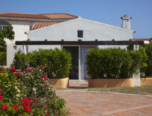 "Lu Nibareddu (PTA106)", 3-rums-hus 60 till 65 m2. Enkelt inrett: vardags-/sovrum med 2 sängar, matbord, sat-TV och luftkonditionering. 1 dubbelrum med dusch/toalett. 1 rum med 2 sovmöjligheter. Kokvrå (4 gasflammor). Dusch/toalett. Terrass. Terrassmöbler. Till förfogande: barnsäng (extra).- Utrustning