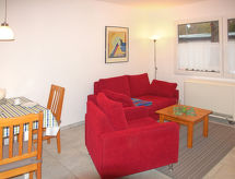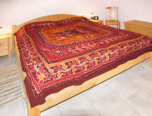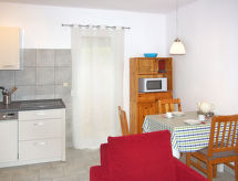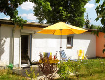 2-rums-ena hälften av ett parhus 36 m2. Renoverad år 2016, mysigt inredd: vardags-/sovrum med 1 bäddsoffa, matbord, sat-TV, radio och DVD. Utgång till terrassen. 1 dubbelrum. Litet, öppet kök (ugn, diskmaskin, 4 kokplattor - glaskeramikhäll, brödrost, vattenkokare, mikrovågsugn, elektrisk kaffemaskin). Dusch/toalett. Eluppvärmning. Terrass 10 m2 täckt terrass 9 m2. Terrassmöbler, utegrill (flyttbar), vilstolar (2). Notera: rökfritt hus. Brandvarnare, brandsläckare.- Utrustning