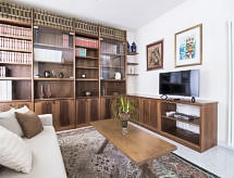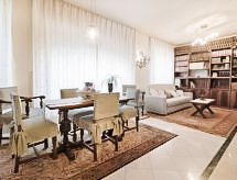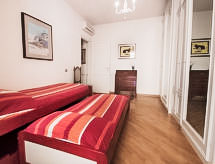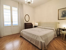 "Lungomare", 3-rums-lägenhet 80 m2 på 1. våningen. Rymlig och ljus, komfortabelt inredd: stort vardags-/matrum med 1 bäddsoffa, matbord och TV (flatscreen TV). 1 dubbelrum med dusch/bidé/toalett. Utgång till terrassen. 1 rum med 1 säng och 1 utdragbar säng. Utgång till terrassen. Litet kök (4 kokplattor, ugn, diskmaskin). Badkar/bidé/toalett. Gasuppvärmning, luftkonditionering. Uppvärmning endast tillgängligt från 01.11. till 15.04. Terrass 15 m2 täckt. Terrassmöbler. Begränsad utsikt på havet. Till förfogande: tvättmaskin, strykjärn. Internet (Trådlös LAN [WLAN] , gratis). Härlig och rymlig inredning med 2 sovrum och 2 badrum, ett stort vardagsrum och pentry samt en trevlig terrass där du kan koppla av.- Aktiviteter i närheten