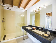 2 km från María de la Salut: Mycket stor, modern, vacker villa "Luxury Clapers", med 2 våningar, omgiven av fält. 2 hus i semesteranläggningen. Utanför orten, 3 km från centrumet av María de la Salut, lugnt, soligt läge, 3 km från skogsbrynet, 15 km från havet, i det gröna. För privat bruk: tomt (inhägnad), stor, välskött trädgård med gräsmatta och träd, 2 swimmingpooler, simhall kantig (8 x 4 m, tillgång säsongsbunden: 01.Jan. - 31.Dec.). Dusch/toalett i poolområdet, bordtennis, sittplats, berså, pergola, trädgårdsmöbler, utegrill. I huset: internetanslutning, Trådlös LAN [WLAN], bordtennis, luftkonditionering, tvättstuga, tvättmaskin. Parkering vid huset på tomten. Stormarknad 2.5 km, restaurang 2.5 km, bar 2.2 km, bageri 2.5 km, sandstrand "Can Picafort" 15 km, strand vid klippor "Can Picafort" 17 km. Sporthamn 17 km, golfbana (18 hål) 25 km. Notera: fordon rekommenderas. Lämplig för barnfamiljer, passande för äldre. Objekt passande för 9 vuxna tonårsgrupper endast på förfrågan. Av- och pålastning av bagage är möjligt vid semesterbostaden. Ägaren bor på samma tomt. Djur i området. Flygplats 35 km från huset.Interior