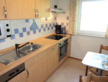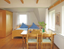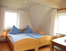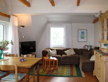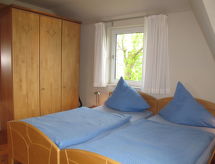 2-rums-lägenhet 55 m2 på 1. våningen. Smakfullt inredd: vardags-/sovrum med snedtak med 2 sängar (90 cm, längd 200 cm), matbord, sat-TV och stereoanläggning. 1 rum med 1 bäddsoffa och 1 x 2 våningssängar (90 cm, längd 200 cm). Kök (ugn, diskmaskin, 4 kokplattor - glaskeramikhäll, brödrost, vattenkokare, mikrovågsugn, elektrisk kaffemaskin). Dusch/toalett. Trädgårdssittplats. Terrassmöbler, vilstolar (2). Till förfogande: Internet (Trådlös LAN [WLAN] , gratis). Notera: rökfri lägenhet. Brandvarnare.- Utrustning