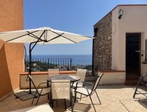"Maison Paradiso", 3-rums-takvåning 75 m2, på övervåningen. Ljus, komfortabelt och smakfullt inredd: vardags-/matrum med takfönster med 1 bäddsoffa för 2 personer (1 x 160 cm), TV och luftkonditionering. 1 rum med 1 dubbelsäng (1 x 160 cm), dusch/bidé/toalett, TV och luftkonditionering. 1 rum med 1 bäddsoffa och luftkonditionering. Öppet kök (ugn, diskmaskin, Gasspis, 4 gasflammor, brödrost, vattenkokare, mikrovågsugn, frys, elektrisk kaffemaskin) med matbord. Dusch/bidé/toalett. Gasuppvärmning. Parkettgolv. Stor terrass 40 m2, sydläge. Terrassmöbler, vilstolar (3). Mycket vacker panoramautsikt på havet, orten, viken och orten. Till förfogande: tvättmaskin. Internet (Trådlös LAN [WLAN] , gratis). CITRA:009049-LT-1272- Utrustning