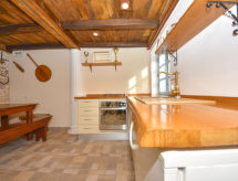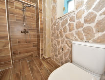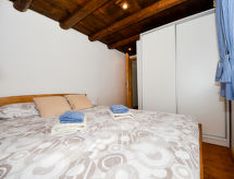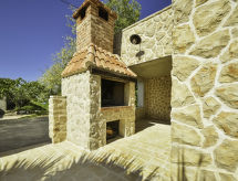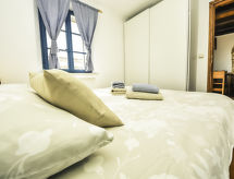 4-rums-ena hälften av ett parhus 105 m2 med 2 våningar, sydläge. 1 rum med 1 fransk säng (140 cm, längd 200 cm), dusch/toalett. Kök (ugn, 4 kokplattor - glaskeramikhäll) med matbord. Övre våning: (utetrappa) vardags-/matrum 24 m2 med sat-TV (flatscreen TV), luftkonditionering. Utgång till terrassen. 1 rum med 1 fransk säng (160 cm, längd 200 cm). 1 rum med 1 x 2 våningssängar (90 cm, längd 200 cm). Öppet kök (ugn, 4 kokplattor - glaskeramikhäll, elektrisk kaffemaskin). Dusch/toalett. Luftkonditionering (extra). Terrass 60 m2. Terrassmöbler, utegrill (flyttbar), vilstolar. Till förfogande: hög barnstol, barnsäng, hårtork. Internet (Trådlös LAN [WLAN] , gratis). 1 husdjur/hund tillåtet.- Utrustning