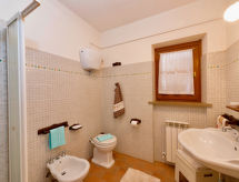 " Quercia", 3-rums-lägenhet 58 m2, på bottenvåningen. Vackert inredd: vardags-/sovrum med 1 bäddsoffa, öppen spis, matbord, TV och stereoanläggning. 1 rum med 1 fransk säng (160 cm). 1 rum med 2 sängar och dusch/toalett. Öppet kök (4 kokplattor, ugn, diskmaskin, mikrovågsugn, frys, elektrisk kaffemaskin). Dusch/toalett. Gasuppvärmning, luftkonditionering. Terrass täckt. Terrassmöbler, vilstolar. Panoramautsikt. Till förfogande: tvättmaskin, kassaskåp. Internet (Trådlös LAN [WLAN] , gratis).- Utrustning
