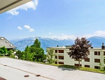 Residens "Mandarin", med 4 våningar. I ortsdelen Les Arolles, i utkanten, 300 m från centrumet av Montana, lugnt, soligt läge. I huset: hiss, skidförråd, centralvärme, tvättmaskin, torktumlare (för gemensamt bruk, extra). Tillfart ända fram till till huset. Parkering (begränsat antal) vid huset. Busshållplats "Vignettes" 450 m. Golfbana (18 hål) 2 km, minigolf 400 m, skidsportanläggningar 500 m, skidbusshållplats 400 m.Interior