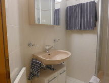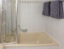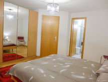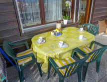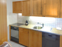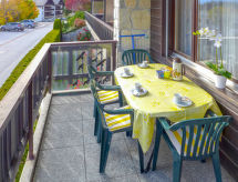3-rums-lägenhet 80 m2 på 1. våningen. Ljus, modernt inredd: vardags-/matrum med öppen spis, kabel-TV och flatscreen TV. Utgång till balkongen, mot söder. 1 rum med 1 fransk säng (160 cm, längd 200 cm), badkar/toalett. Utgång till terrassen, mot norr. 1 rum med 2 sängar (80 cm, längd 190 cm). Utgång till terrassen, mot norr. Öppet kök (ugn, diskmaskin, 4 kokplattor - glaskeramikhäll, brödrost, vattenkokare, mikrovågsugn, elektrisk kaffemaskin, Kapslar till kaffemaskin (NESPRESSO) extra, raclettegrill, fondueset (ost )). Dusch/toalett. Balkong 7 m2, sydläge. Balkongmöbler, vilstolar (2). Vacker utsikt på bergen och landskapet. Till förfogande: strykjärn, hårtork. Internet (Trådlös LAN [WLAN] , gratis). Notera: rökfri lägenhet. Max 1 husdjur/hund tillåtet.- Kännetecken för boendet