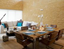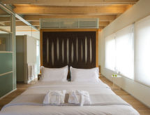 Modern, luxuös villa "Mandarina", med 2 våningar, fristående. I ortsdelen Kontomari 2.4 km från centrumet av Maleme, lugnt läge, 1.9 km från stranden. För privat bruk: vacker, välskött trädgård 230 m2 med blommor och träd, pool kantig (39 m2, tillgång säsongsbunden: 01.Mar. - 30.Nov.) med innertrappor. Utedusch, utegrill. Byte av sängkläder 1 gånger i veckan. Byte av handdukar 1 gånger i veckan. Städning 6 gånger i veckan. Telefon - lokala och nationella samtal gratis. Parkering (för 2 bilar) vid huset. Livsmedelsaffär 1.2 km, stormarknad 1.2 km, restaurang 2.3 km, bageri 1.2 km, café 2.3 km, sandstrand "Maleme" 1.9 km. Minigolf 6.6 km, ridstall 11 km. Närbelägna sevärdheter: Aqua Park Limnoupolis 18 km, Venizelos Graves 22 km, Chania Old Venetian Port 18 km, Chania Old Market 17 km, World War II Cemetery 4.1 km, Historic War Shelter of Platanias 6.5 km. Notera: fordon rekommenderas. Babyutrustning på förfrågan (inkl.). Tonårsgrupper endast på förfrågan. I denna semesteranläggning finns det fler bostäder att hyra. Objektnummer GR6515.2.1 är beläget på samma tomt.Interior