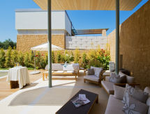 "Mandarina", 4-rums-villa 197 m2 med 2 våningar. Rymlig och ljus, vackert och modernt inredd: öppet stort vardags-/matrum med matbord och sat-TV (flatscreen TV), radio och vedugn. Utgång till swimmingpoolen. 2 dubbelrum, till varje rum hör 2 sängar. Utgång till terrassen, till swimmingpoolen. Öppet kök (ugn, diskmaskin, 4 kokplattor - glaskeramikhäll, elektrisk kaffemaskin, Kapslar till kaffemaskin (Dolce Gusto) extra, köksö). Badkar/toalett. Luftkonditionering. Övre våning: (stege utan räcke) 1 stort rum med 1 bäddsoffa, 1 dubbelsäng, badkar/dusch/toalett, dubbelt handfat, bubbelbad och sat-TV (flatscreen TV). Utgång till balkongen. Luftkonditionering. Balkong, stor terrass. Sittgrupp. Vacker utsikt på bergen, trädgården och landskapet. Till förfogande: tvättmaskin, telefon, kassaskåp, strykjärn. Internet (Trådlös LAN [WLAN] , gratis). Notera: rökfritt hus. 1042K91002965801- Kännetecken för boendet