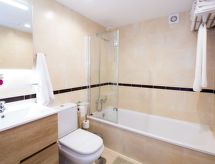 Mycket mysigt flerfamiljshus "Manilva Hide Away". Utanför orten, på en kulle, 200 m från havet, 200 m från stranden. För gemensamt bruk: tomt (inhägnad), trädgård, 2 pooler rund inhägnad (50 - 190 cm djup, tillgång säsongsbunden: 01.Jan. - 31.Dec. poolen är öppen under följande tider: mellan kl 10:00-22:00). Utedusch, parkering (täckt), gemensamt garage nr 17. Parkeringsplats eller garageplats endast för små-mellanstora bilar. Affär 2 km, stormarknad 2 km, restaurang 100 m, sandstrand 200 m, utomhusbad 20 m. Sporthamn 3 km, golfbana (18 hål) 3 km. Närbelägna sevärdheter: Sotogrande 12 km, Estepona old town 17 km, Selwo Adventure Park 25 km, Puerto Banus 36 km, Puerto Deportivo de Estepona 14 km, Puerto Deportivo La Duquesa 3 km. Notera: fordon rekommenderas. Objekt passande för 4 vuxna. Ägaren accepterar inga grupper. Ägaren accepterar inga ungdomsgrupper. Lugnt och tyst område. Tystnad och gott uppförande förväntas.Interior