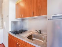 Residens "Mare Nostrum", med 4 våningar. I ortsdelen Les Falaises/Le Mole, 300 m, upphöjt läge, 300 m från havet, 300 m från stranden. För gemensamt bruk: trädgård, pool (11 x 20 m, 170 - 225 cm djup, tillgång säsongsbunden: 15.Apr. - 30.Sep.). Tennis (extra). Affär, restaurang, bar 50 m, bageri 450 m. Sporthamn 500 m, golfbana (27 hål) 2.5 km, ridstall 3.7 km. Närbelägna sevärdheter: Musée de l'Ephèbe 850 m, Grande roue 950 m, Casino 1.3 km, Aqualand 2.3 km, Ile des loisirs 2.4 km.Interior