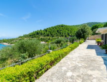 3-rums-hus 75 m2, norrläge. Vardags-/matrum med 1 bäddsoffa (80 cm, längd 200 cm), sat-TV (flatscreen TV), fläkt. Utgång till terrassen. 2 rum, till varje rum hör, 1 dubbelsäng (2 x 80 cm, längd 200 cm), fläkt. Öppet kök (4 kokplattor, ugn, diskmaskin, frys, elektrisk kaffemaskin). Dusch/bidé/toalett. Terrass 40 m2. Terrassmöbler, vilstolar. Härlig utsikt på havet. Till förfogande: strykjärn, hårtork. Internet (Trådlös LAN [WLAN] , gratis). 1 husdjur/hund tillåtet. Elektricitet från solenergi (220 voltI).- Utrustning