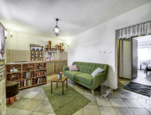 3-rums-hus 65 m2. Vardags-/matrum med sat-TV (flatscreen TV), vedugn. 1 rum med 1 fransk säng (140 cm, längd 200 cm). 1 rum med 1 säng (90 cm, längd 190 cm), 1 fransk säng (160 cm, längd 200 cm). Öppet kök (4 kokplattor, ugn, frys, elektrisk kaffemaskin). Dusch/toalett. Veduppvärmning. Terrass 25 m2, terrass 10 m2, täckt. Terrassmöbler, vilstolar. Till förfogande: ved (gratis). Internet (Trådlös LAN [WLAN] , gratis).- Utrustning