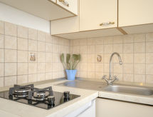 1-rums-hus 20 m2, sydläge. Vardags-/sovrum med 1 x 2 våningssängar (80 cm, längd 200 cm), 1 fransk säng (160 cm, längd 200 cm), sat-TV (flatscreen TV), luftkonditionering. Utgång till terrassen. Öppet kök (2 kokplattor) med matbord. Dusch/toalett. Terrass 100 m2 täckt. Terrassmöbler. Utsikt på swimming-poolen och landskapet. Till förfogande: Internet (Trådlös LAN [WLAN] , gratis).- Utrustning
