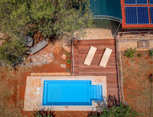 Enfamiljshus "Marijo". 1.7 km från centrumet av Stari Grad, lugnt, soligt läge, 1.7 km från havet, 3 km från stranden. För privat bruk: tomt 5'700 m2, pool kantig (6 x 3 m, 135 cm djup, tillgång säsongsbunden: 01.Maj. - 01.Okt.) med innertrappor och larm. Terrass (50 m2), trädgårdsmöbler, utegrill. I huset: internetanslutning. Parkering (för 2 bilar) vid huset på tomten. Affär 1.7 km, restaurang 1.7 km, strand vid klippor 3 km.Interior