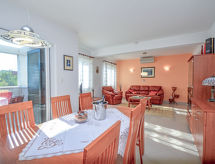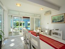 Stor, barnvänlig, komfortabel villa "Marina", med 3 våningar. 300 m från centrumet av Betina, 1.5 km från centrumet av Murter, 7 km från centrumet av Tisno, lugnt, soligt läge, 200 m från havet, 200 m från stranden. För privat bruk: tomt 1'500 m2, välskött trädgård med gräsmatta 50 m2 träd, simhall kantig, uppvärmd (8 x 4 m, 160 - 180 cm djup, tillgång säsongsbunden: 01.Jan. - 31.Dec.). Dusch/toalett i poolområdet, bubbelbad, terrass, trädgårdsmöbler, utegrill, barnlekplats (gunga). I huset: internetanslutning, bastu, gym, tvättmaskin, torktumlare. Parkering (för 5 bilar, täckt) vid huset på tomten. Affär, restaurang 300 m, betongbelagd strand 200 m. Marina 200 m. Ägaren accepterar inga ungdomsgrupper. Pool med motström. Pooluppvärmning extra under perioden 20.11.-15.05. I andra perioder är det inkluderat i priset.Interior