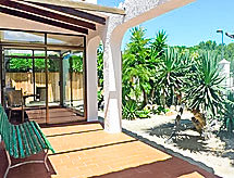 4-rums-hus 60 m2. Praktiskt och komfortabelt inrett: vardags-/matrum med vinterträdgård med öppen spis och matbord. Utgång till trädgårdssittplatsen. 1 rum med 2 sängar (90 cm). 1 rum med 1 säng (90 cm). Öppet kök (4 kokplattor, ugn, elektrisk kaffemaskin) med bar. Dusch/toalett. Uppvärmning, luftkonditionering, varmluftsuppvärmning. Övre våning: salong med 1 utdragbar säng (2 pers. 2 x 90 cm), sat-TV. Utgång till terrassen. Terrass 20 m2, terrass 5 m2. Terrassmöbler, utegrill (flyttbar). Till förfogande: tvättmaskin. 1 husdjur/hund tillåtet. HUTTE001038- Utrustning