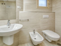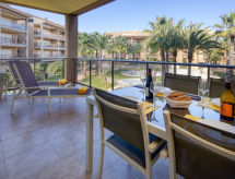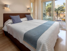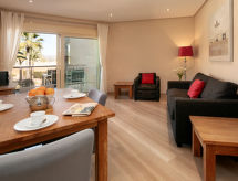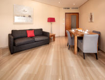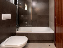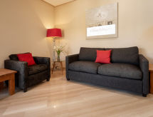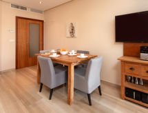 3-rums-lägenhet 82 m2 på 1. våningen. Komfortabelt och vackert inredd: vardags-/matrum med sat-TV och digital-TV (flatscreen TV), stereoanläggning och elektrisk fönsterlucka. Utgång till balkongen. 1 rum med 1 fransk säng (2 x 90 cm, längd 200 cm), badkar/bidé/toalett, dubbelt handfat och TV (flatscreen TV). Utgång till balkongen. 1 rum med 2 sängar. Kök (ugn, diskmaskin, 4 kokplattor - glaskeramikhäll, mikrovågsugn, frys, elektrisk kaffemaskin). Dusch/bidé/toalett. Luftkonditionering, varmluftsuppvärmning. Balkong 13 m2. Terrassmöbler, vilstolar (2). Utsikt på swimming-poolen. Till förfogande: tvättmaskin. Internet (Trådlös LAN [WLAN] , gratis). Garage nr 66. Notera: rökfri lägenhet. Brandvarnare. AT-440255-A- Kännetecken för boendet