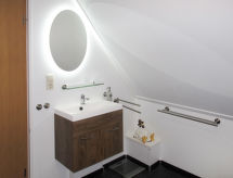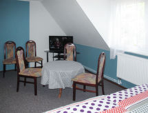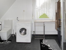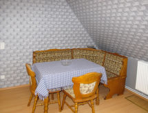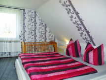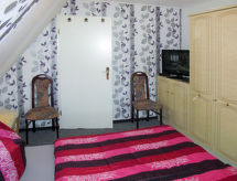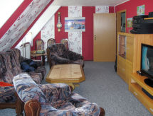 3-rums-lägenhet 80 m2 på 1. våningen. Delvis renoverad år 2020, praktiskt inredd: vardagsrum med snedtak med sat-TV och stereoanläggning. 1 rum med snedtak med 1 dubbelsäng och sat-TV. 1 rum med snedtak med 2 sängar och sat-TV. Kök (ugn, diskmaskin, 4 kokplattor - glaskeramikhäll, brödrost, vattenkokare, mikrovågsugn, frys, elektrisk kaffemaskin) med matvrå. Dusch/toalett. Gasuppvärmning. Heltäckningsmatta. Trädgårdssittplats. Terrassmöbler, utegrill (flyttbar), förråd. Till förfogande: tvättmaskin, hög barnstol, barnsäng för barn under 2 år. Internet (Trådlös LAN [WLAN] , gratis). Notera: rökfri lägenhet. Privat entré, privat entré, brandvarnare.- Utrustning