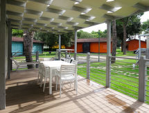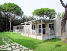 "Maxi Caravan Capri", 4-rums-mobile home 34 m2. Praktiskt: vardags-/matrum med matbord och sat-TV. Utgång till terrassen. 1 rum med 1 fransk säng (160 cm), dusch/toalett. 2 rum, till varje rum hör 2 sängar (80 cm). Kokvrå (4 gasflammor, frys). Dusch/toalett. Luftkonditionering. Ingen uppvärmningsmöjlighet. Terrass, berså. Terrassmöbler, vilstolar (1). Till förfogande: hög barnstol, barnsäng. Internet (Trådlös LAN [WLAN] , extra). Parkeringsplats. Notera: rökfri lägenhet.- Utrustning