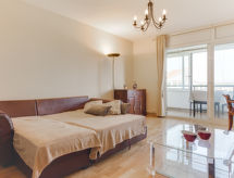 2-rums-lägenhet 50 m2. Komfortabelt och vackert inredd: vardags-/matrum med 1 bäddsoffa för 2 personer (1 x 140 cm, längd 200 cm), TV (flatscreen TV). Utgång till loggian. 1 rum med 1 fransk säng (1 x 140 cm, längd 190 cm). Kök (miniugn, ugn, diskmaskin, 4 Induktionshäll, brödrost, vattenkokare, frys, elektrisk kaffemaskin). Utgång till balkongen. Badkar, sep. Toalett. Gasuppvärmning. Vacker utsikt på bergen. Till förfogande: tvättmaskin, strykjärn, hårtork. Internet (Trådlös LAN [WLAN] , gratis). Notera: 1 husdjur/hund tillåtet. Brandvarnare. 64483000199B1- Utrustning