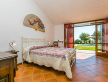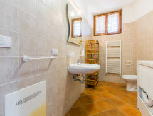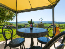 "Metallo", 6-rums-ena hälften av ett parhus 140 m2 med 2 våningar. Vackert och mysigt inredd: 1 rum med 1 fransk säng (160 cm). Utgång till trädgården. 1 rum med 1 x 2 våningssängar, 1 fransk säng (140 cm). Utgång till trädgården. Stort kombinerat kök och vardagsrum (ugn, diskmaskin, 4 gasflammor, brödrost, vattenkokare, mikrovågsugn, frys, elektrisk kaffemaskin) med matbord, sat-TV. Dusch/bidé/toalett. Övre våning: öppen liten genomgångsrum med 1 bäddsoffa. 1 rum med 1 fransk säng (160 cm). 1 rum med 2 sängar. Dusch/bidé/toalett. Gasuppvärmning. Terrass, trädgårdssittplats, trädgård 300 m2, gräsmatta, berså. Terrassmöbler, utegrill, vilstolar. Mycket vacker utsikt på landskapet. Till förfogande: tvättmaskin, strykjärn, hög barnstol, barnsäng för barn under 2 år, hårtork. Internet (Trådlös LAN [WLAN] , gratis). Notera: lämpligt för barnfamiljer. Rökfri lägenhet. Privat entré, privat entré. Vid bokning med ett mindre antal personer än det maximala är en av våningarna inte tillgänglig. Inga obligatoriska extra avgifter betalas på plats förutom lokal skatt. Sängkläder, handdukar, slutstädning och energikostnader är inkluderade.- Utrustning